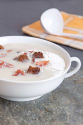 - Servir bien chaud parsemé du mélange bacon-pain d'épices.