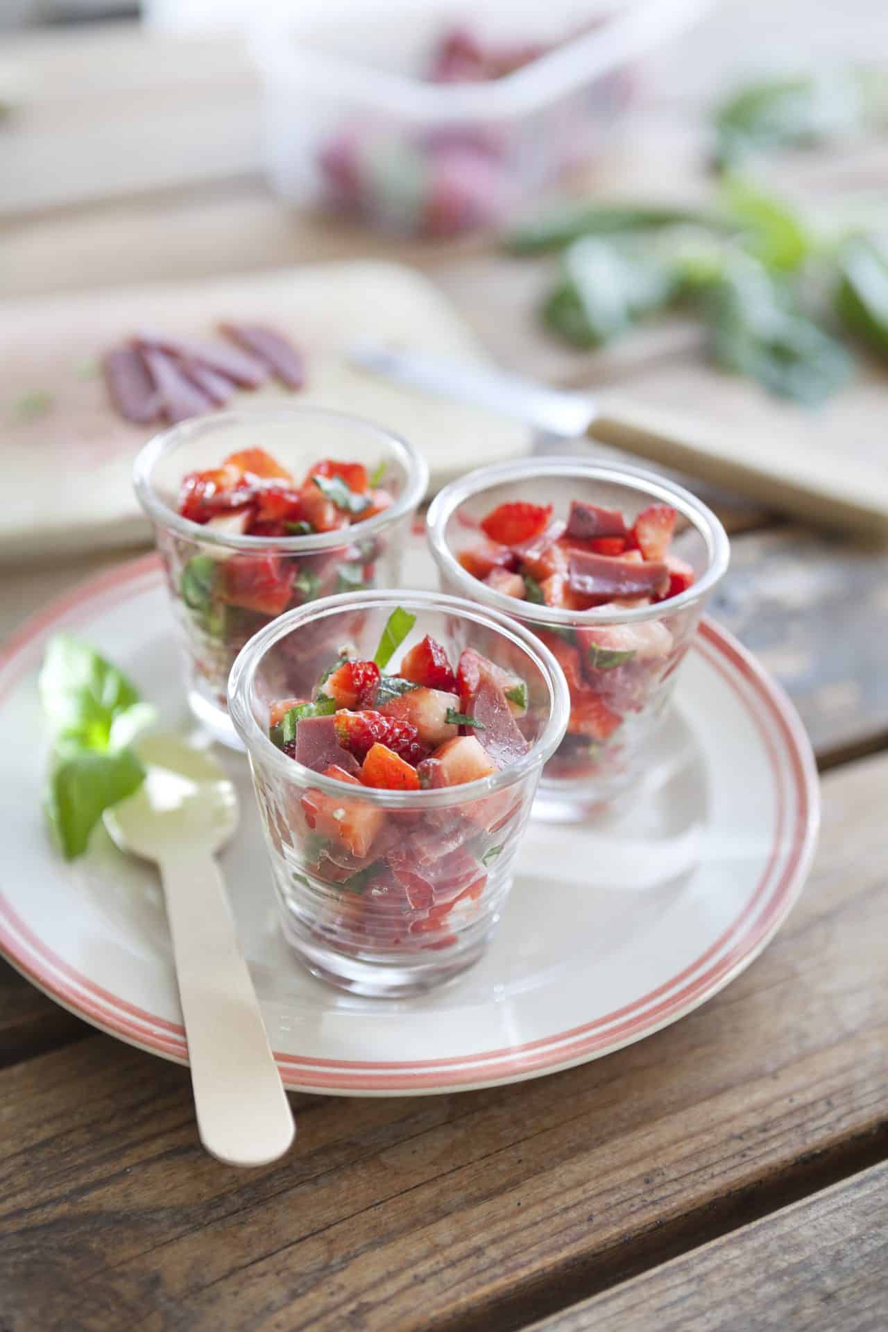 Verrine de fraises au canard fumé
