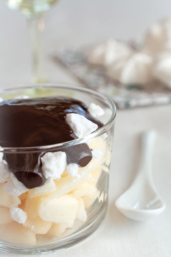 - Verser le chocolat dans les verrines avant de servir. La pomme pour le frais, la meringue pour le croustillant, le chocolat pour le fondant…cette combinaison de sensations va ravir toute la famille !