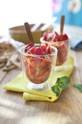 Verrines carottes-fraises à la verveine