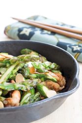 Wok d’asperges vertes au poulet et amandes grillées
