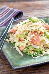 Wok de chou vert au poulet soja et sésame doré