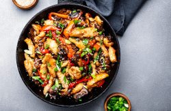 Wok de légumes d'hiver, poulet grillé et noix de cajou