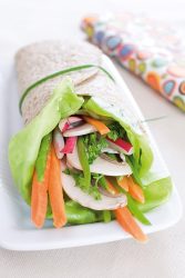 Variante : pour une version plus protéinée, ajouter une demi-tranche de jambon blanc entre la feuille de laitue et les légumes.