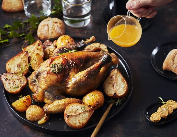 Juteuse et savoureuse, la poire est la star de l’automne. On la cuisine habituellement version sucrée, avec des desserts comme les tartes, les crumbles, les clafoutis, les smoothies, les compotes, les confiture… Tout un festival ! Mais la poire sait jouer aussi avec la carte du sucré-salé. Avec elle, la classique dinde de Noël est revisitée, complètement twistée, et les marrons se font poires. Tout est réuni pour vous régaler. En plus, c’est ultra facile à cuisiner et vraiment trop bon !