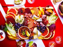 Disposez les ingrédients sur votre planche selon l'agencement de votre choix et servez avec le pain.